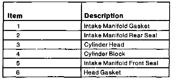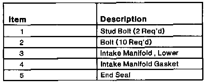1. The lower intake manifold, cylinder head and cylinder block mating surfaces should be clean and free of old gasketing material. Use a suitable solvent to clean these surfaces.