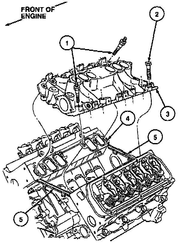 5. Remove lower intake manifold retaining bolts/studs.