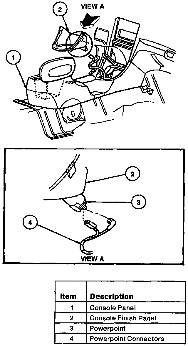 5. Remove console finish panel by carefully prying up from retaining clips. Disconnect electrical connectors.