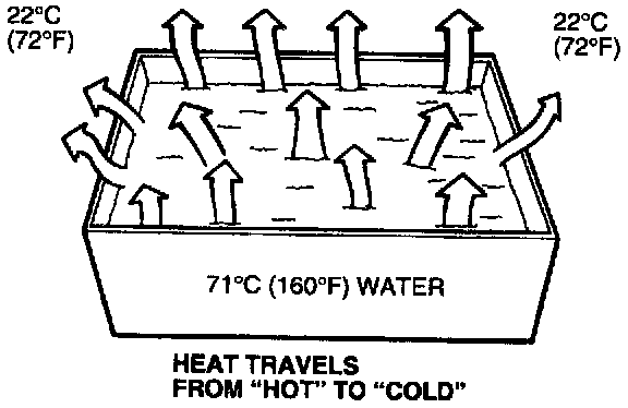 For example, heat flows from a pan of hot water to the cooler air around it.