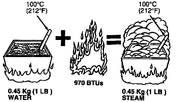 Conversely, the vapor will give off 970 BTUs in condensing back to water.