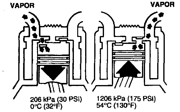 It may seem difficult to understand how heat can be transferred from a comparatively cooler vehicle passenger compartment to the hot outside air. The answer lies in the difference between the refrigerant pressure in the A/C evaporator core and the pressure in the A/C condenser core: