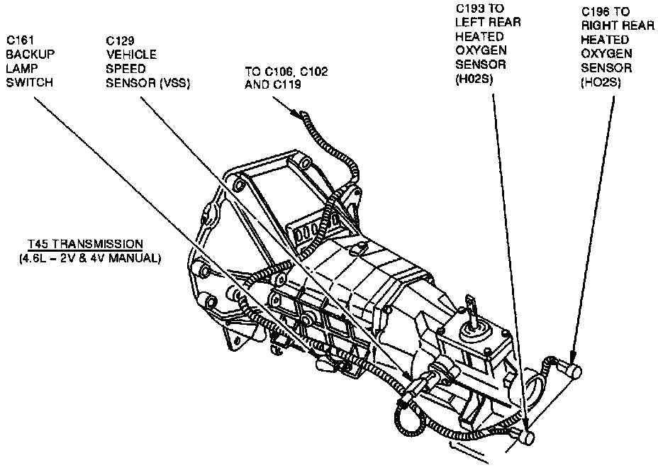 The Vehicle Speed Sensor is located at the LH rear of transmission.