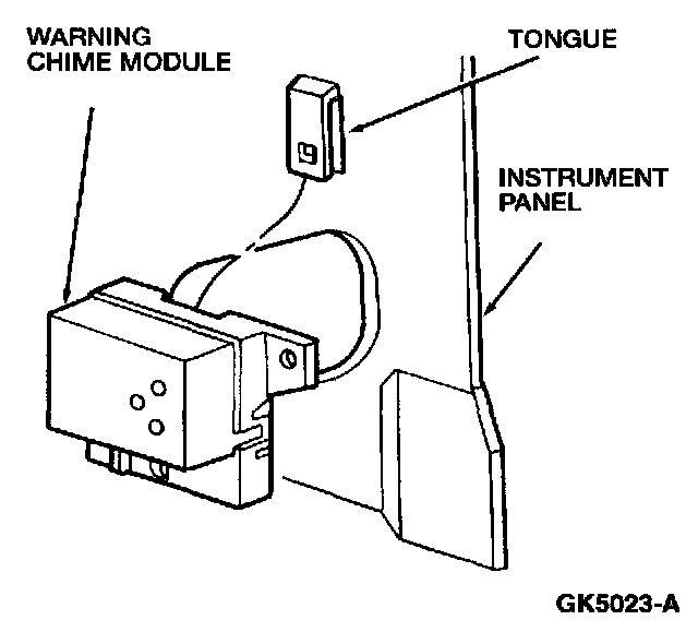 2. Depress locking tab on warning chime module and slide module off tongue.