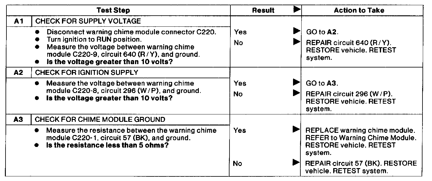 Test A: Warning Chime/Buzzer Inoperative