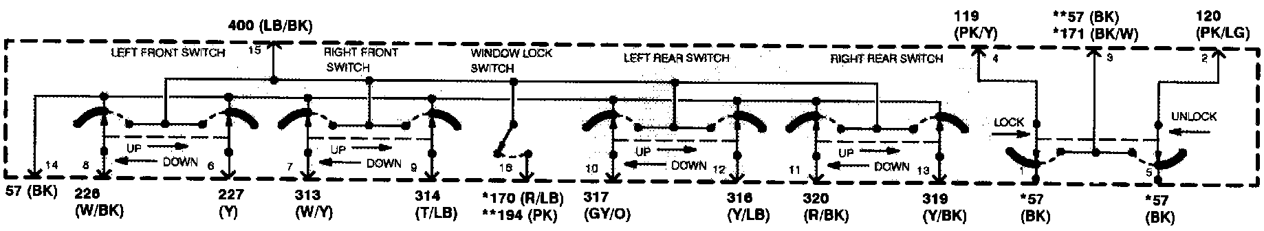 Master Window/Door Lock Control Switch - Schematic (Convertible):