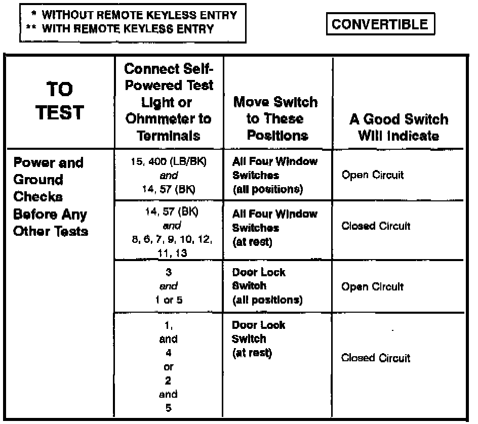 Master Window/Door Lock Control Switch - Component Testing Procedure (Part 1 Of 2) (Convertible):