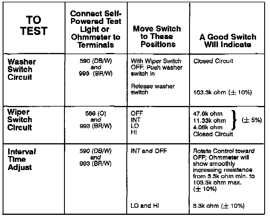 Multi-Function Switch - Schematic - Wiper Portion Of Multi-Function Switch:
