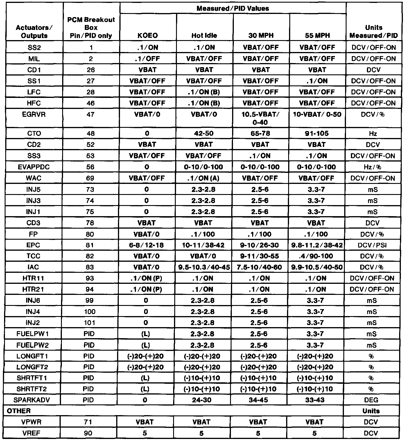 H. Values shown are commanded by the Powertrain Control Module (PCM) and may not be actual.