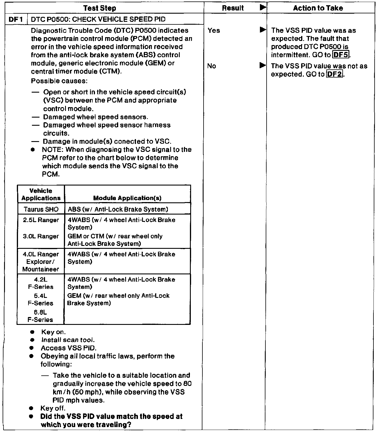 DF - Vehicle Speed Circuit Check