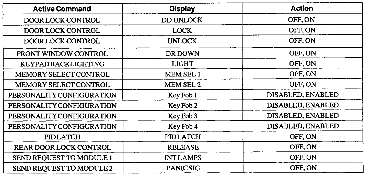 Driver Door Module (DDM) Active Command Index