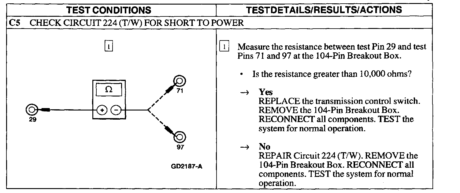 Pinpoint Test C: The Transmission Control Switch (TCS) Is Inoperative