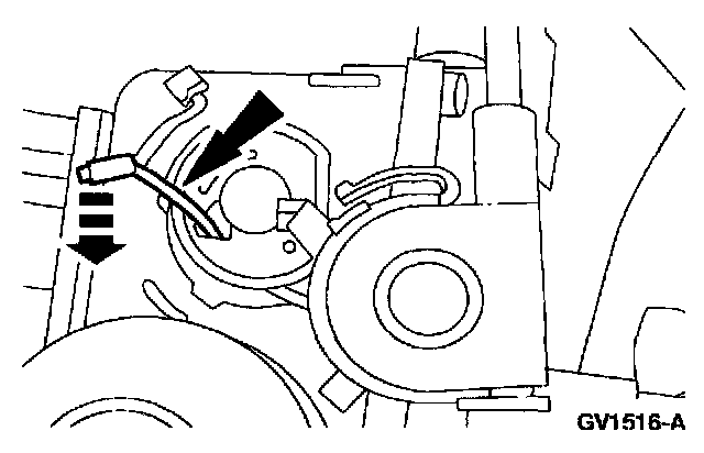 - Move the spring tab away from the speed control cable end to release the cable from the actuator.