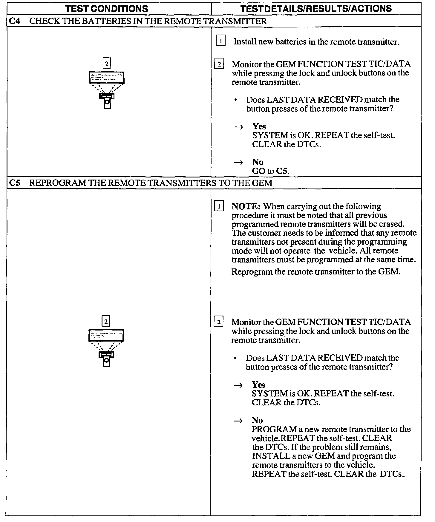 Test C: Doors Do Not Lock/Unlock Using the Remote Transmitter