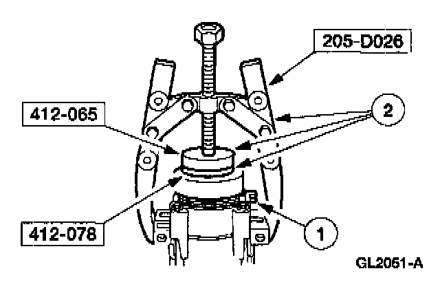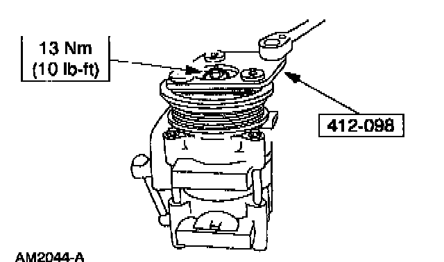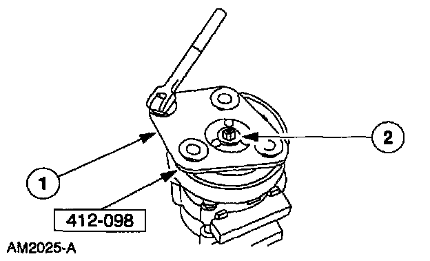 CAUTION: Do not use air tools. The [1][2]A/C clutch field coil can be easily damaged.