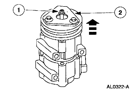 1. Clean the [1][2]A/C clutch field coil and pulley mounting surfaces.