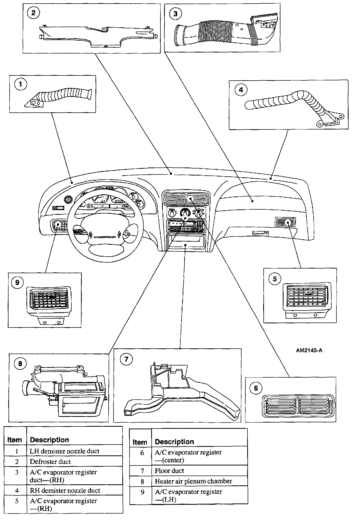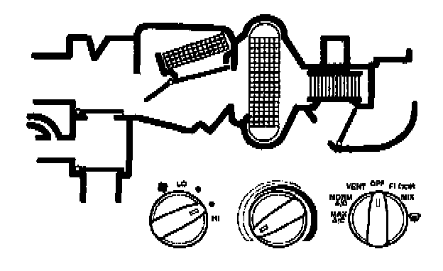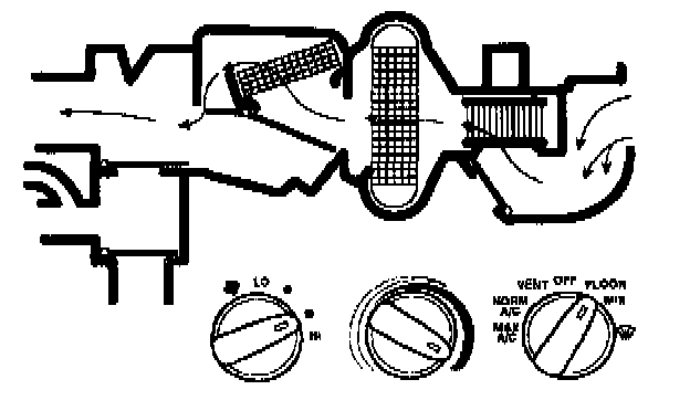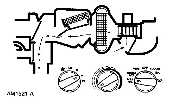 - air will be picked up at the recirculation opening by the blower motor. Airflow across the A/C evaporator core will be diverted past the heater core and then directed into the passenger compartment through the instrument panel A/C registers.