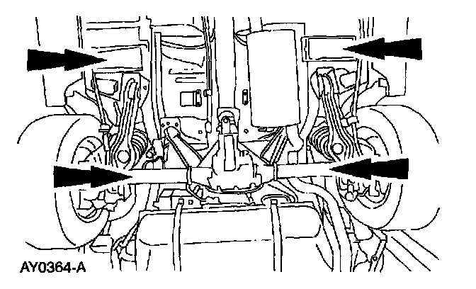 ^ Never use the differential housing as a lift point. Damage to the differential housing and cover may occur.