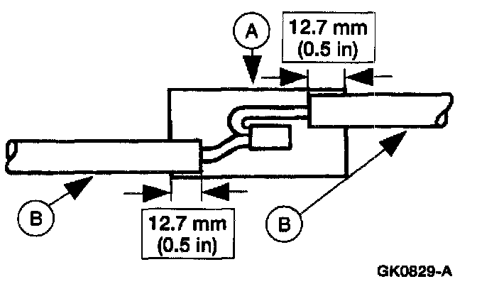 5. Position the (A) heat shrink tube over the (B) wire repair.
