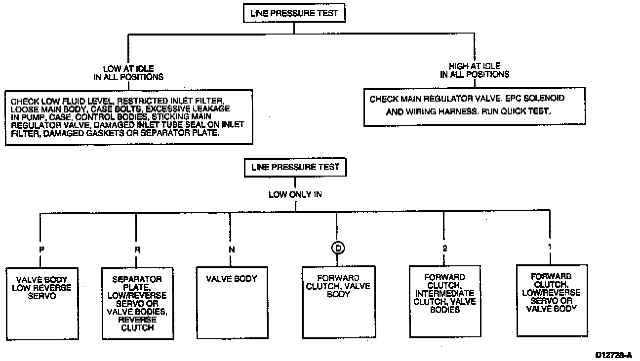 2. Start engine and check line pressures. Refer to the Line Pressure Chart to determine if line pressure is within specification.
