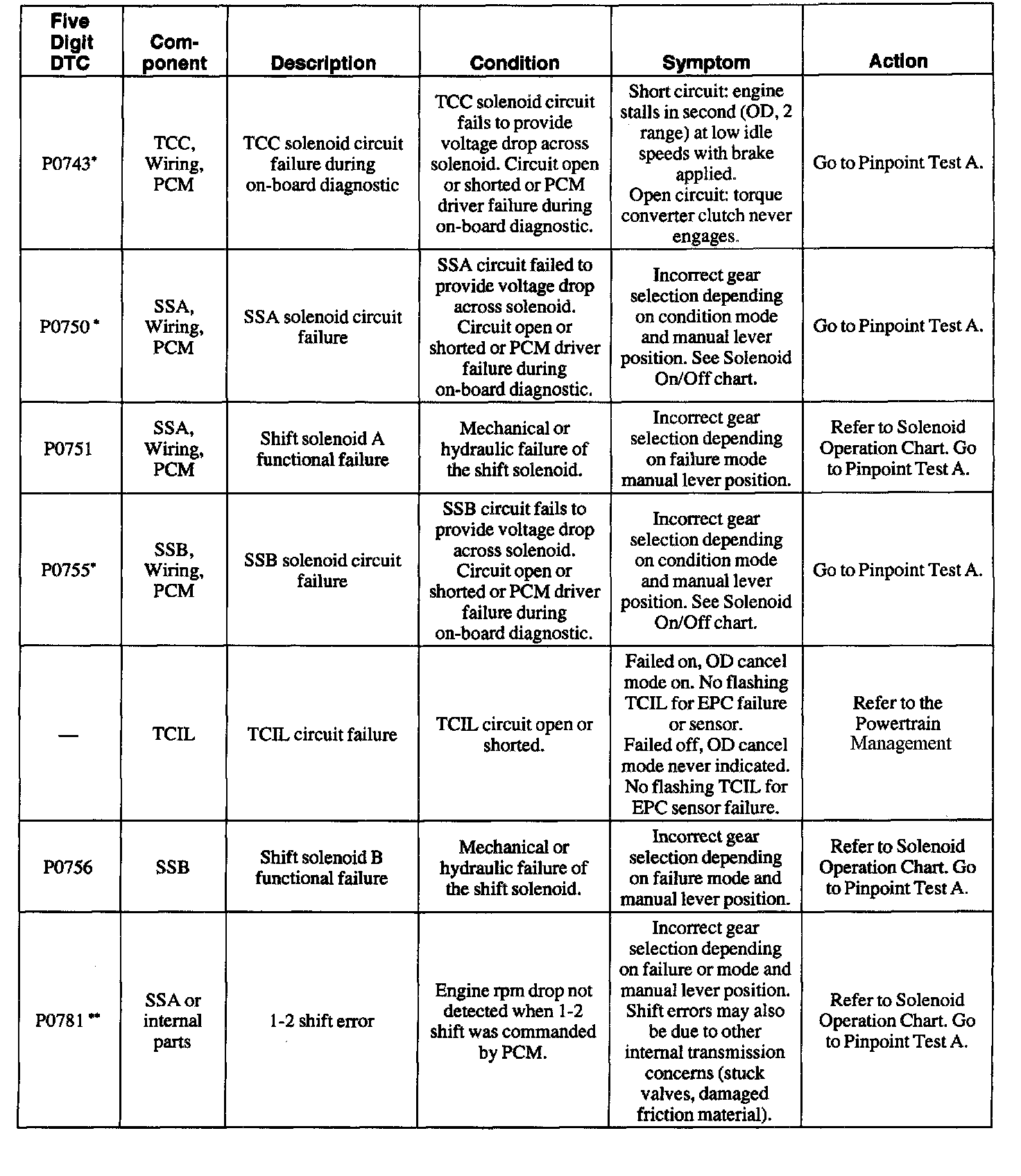 * Output circuit check, generated only by electrical symptoms.