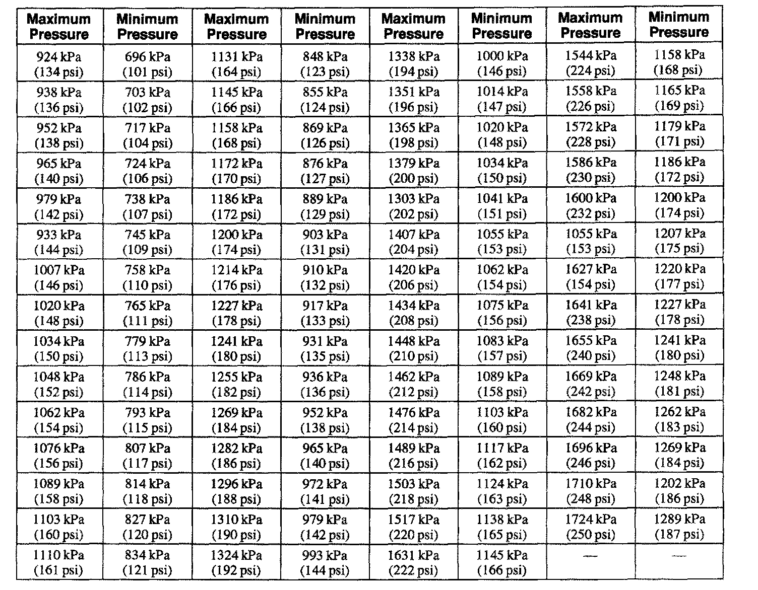 Compression Pressure Limit Chart: