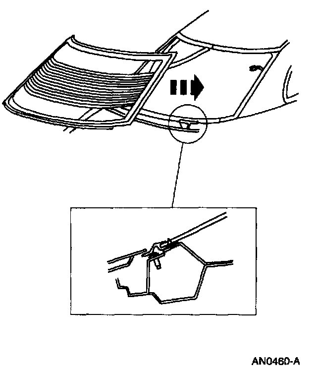 NOTE: Clean around the pinch weld area to remove any dirt or foreign material that could contaminate the existing urethane once it is trimmed.