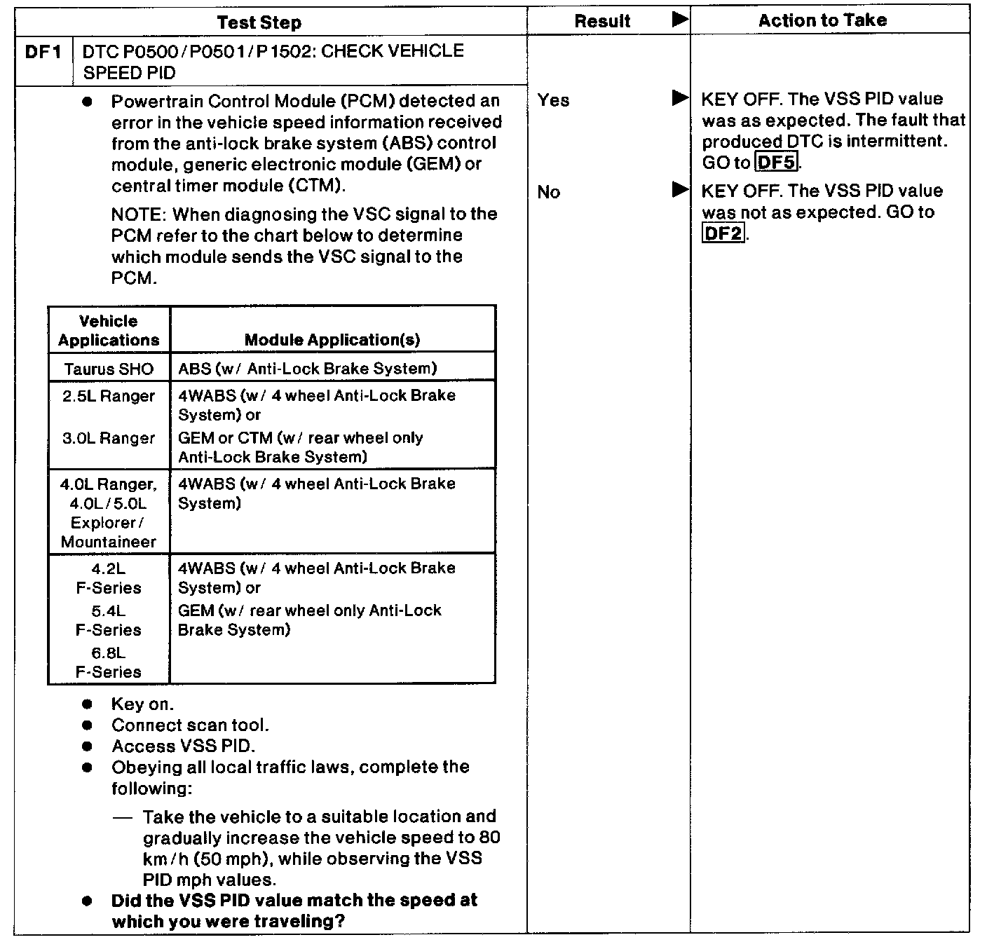 DF - Vehicle Speed Circuit Check