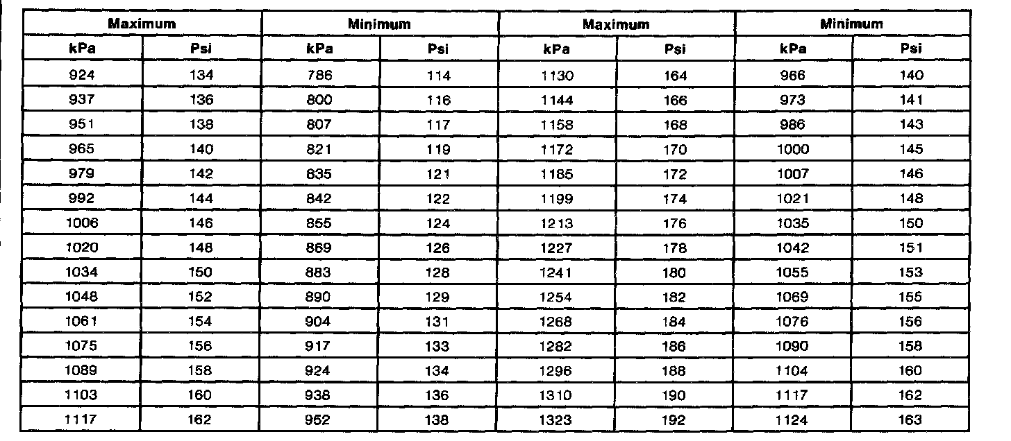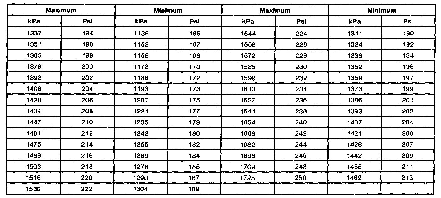 AllData Editors Note - Ford does not provide a cranking pressure specification, only an acceptable range.Compression Pressure Limit Chart - 3.4L SHO Engine (1 Of 2):