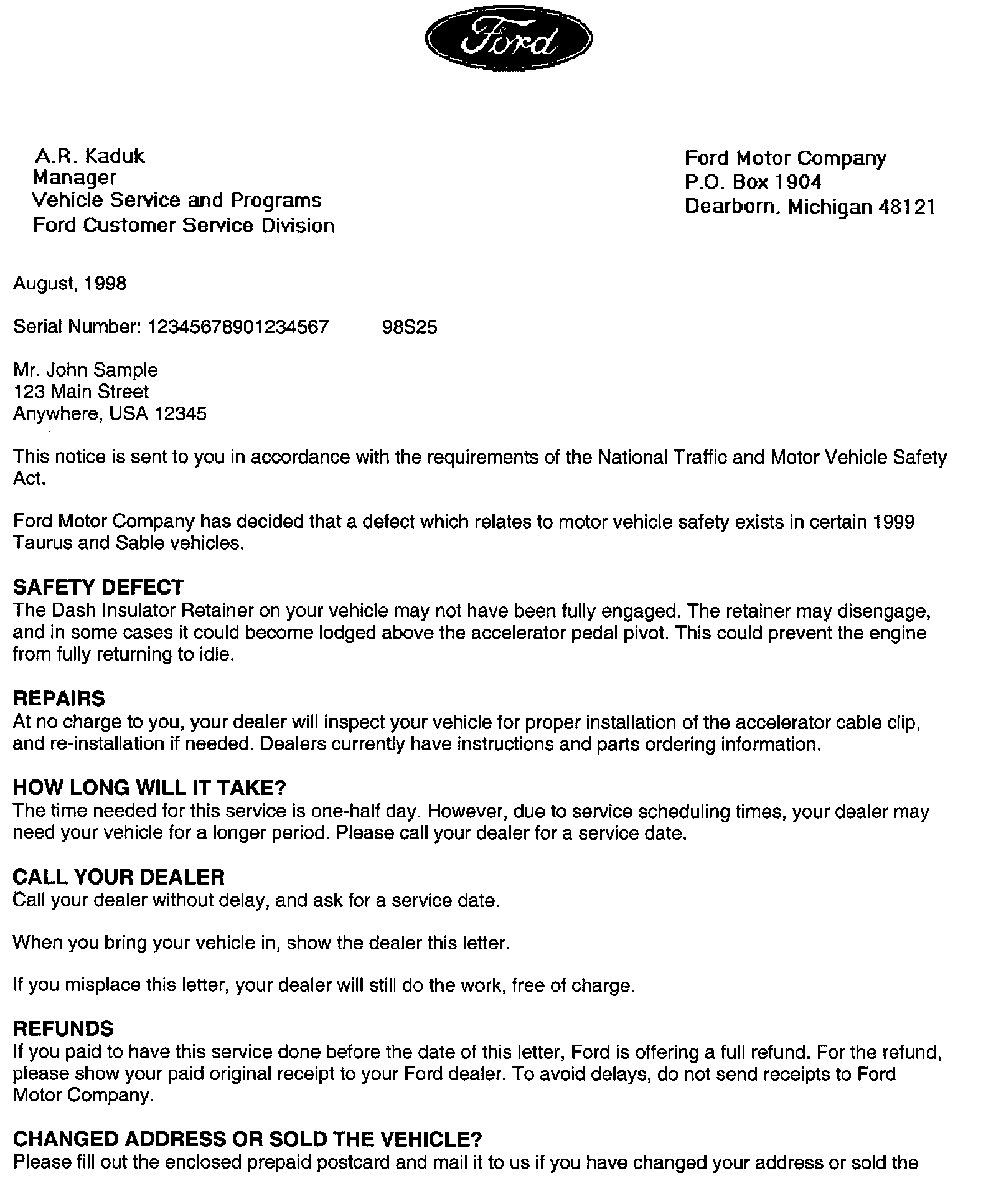 Recall - Dash Insulator, Accelerator Interference