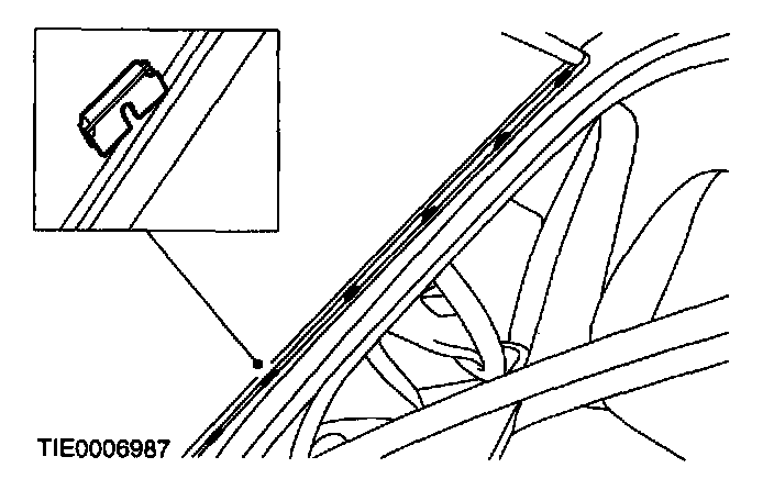 14. Install the 12 A-pillar trim retaining clips and install the A-pillar windshield trims.