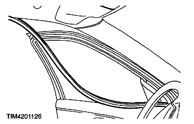 2. Check the pinch weld sealing area for damaged sheet metal, rust or foreign objects which may have caused, or may cause, glass breakage.