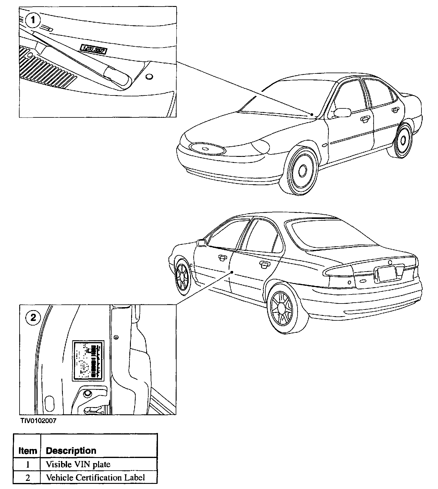 The Vehicle Identification Number (VIN) for title and registration purposes is stamped on a metal plate and fastened to the instrument panel close to the windshield glass on the left-hand side of the vehicle and is visible from the outside.