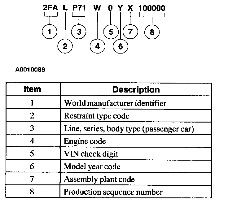 Positions 5 through 7 indicate vehicle line, series and body type.