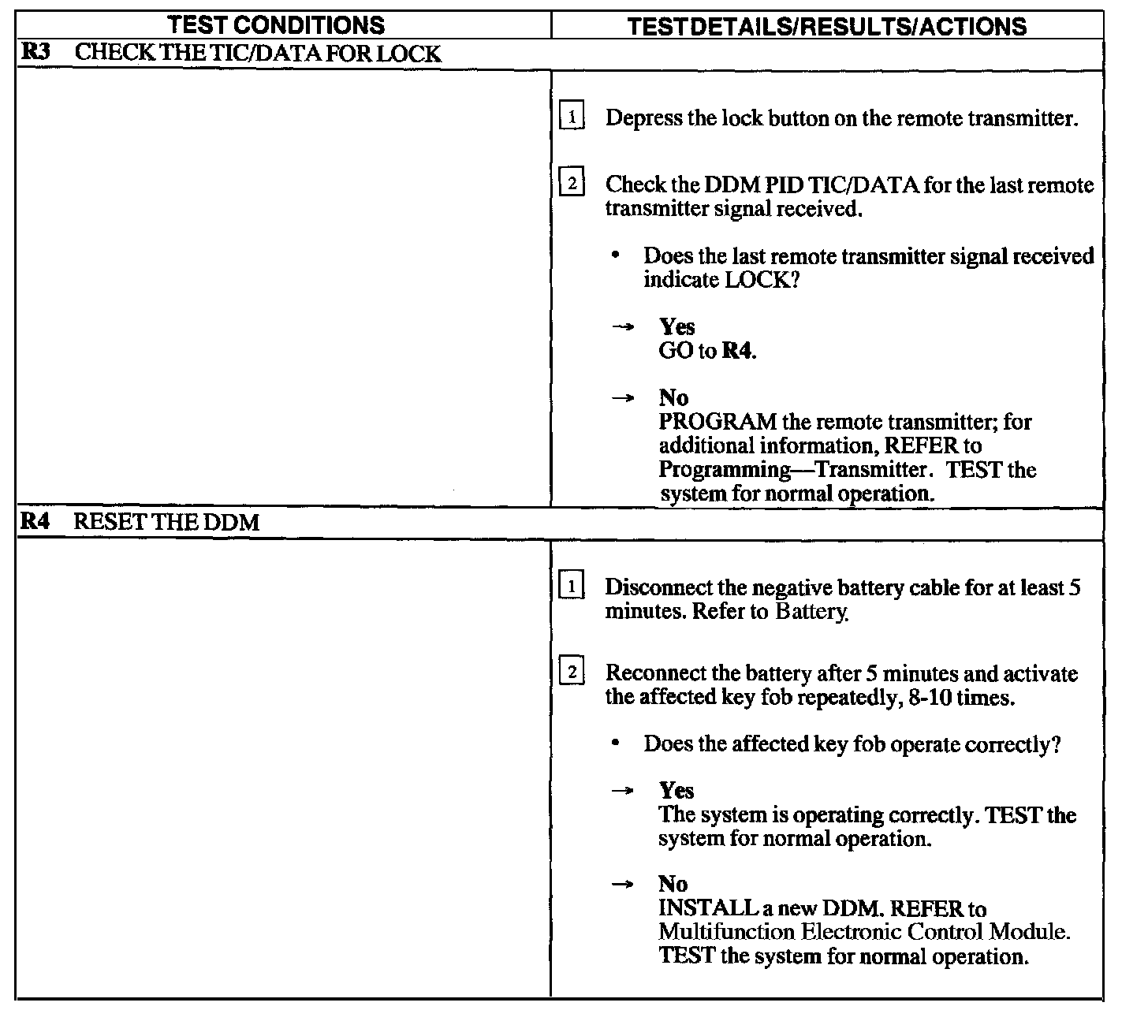 Test R: Doors Do Not Lock/Unlock Using the Remote Transmitter