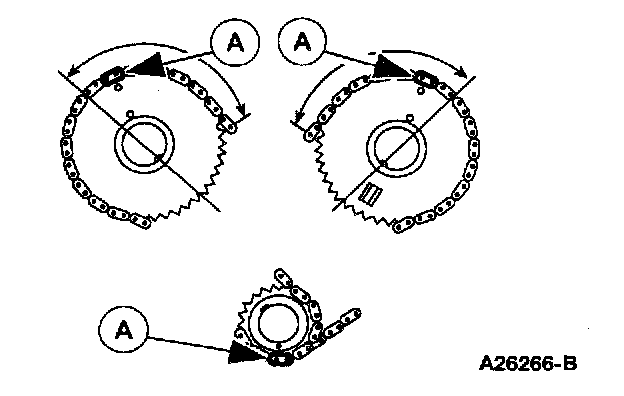 Make sure that the copper marks on the timing chain are lined up with the corresponding dots on the crankshaft sprockets and the camshaft sprockets.
