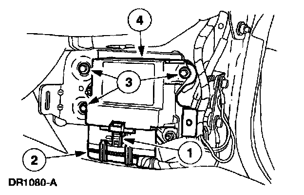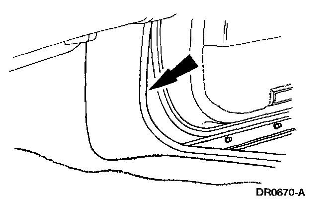 ^ THE AIR BAG ELECTRONIC CRASH SENSOR (ECS) ORIENTATION IS CRITICAL FOR CORRECT SYSTEM OPERATION. IF A VEHICLE EQUIPPED WITH AN AIR BAG SUPPLEMENTAL RESTRAINT SYSTEM (SRS) HAS BEEN INVOLVED IN A COLLISION IN WHICH THE RIGHT COWL A-PILLAR AREA HAS BEEN DAMAGED, INSPECT THE MOUNTING AND BRACKET FOR DEFORMATION. IF DAMAGED, THE (ECS) MUST BE REPLACED WHETHER OR NOT THE AIR BAGS HAVE DEPLOYED. IN ADDITION, MAKE SURE THE AREA OF THE (ECS) MOUNTING IS RESTORED TO ITS ORIGINAL CONDITION.