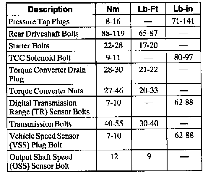 Torque Specifications