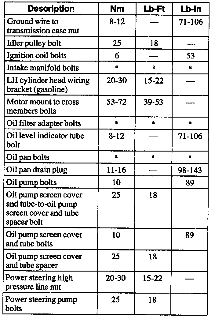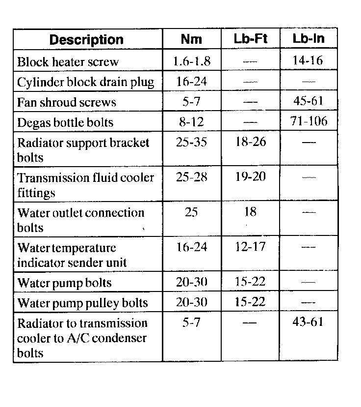General Torque Specifications