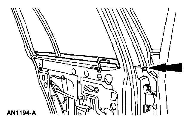 5. Remove the rear door window glass. For additional information, refer to Window Glass - Rear Door.