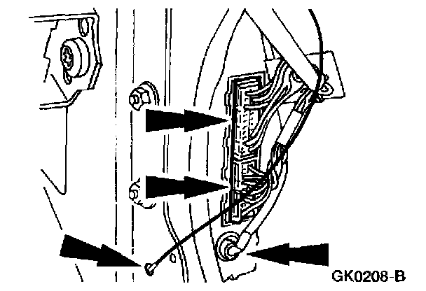 3. Disconnect the two electrical connectors, the ground strap from the sheet metal and the Remote Anti-theft Personality (RAP) module antenna.