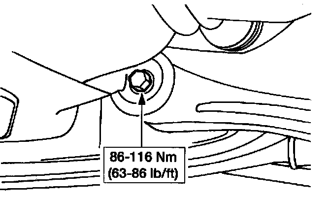 8. Remove the rear suspension arm and bushing (front) bolt and remove the rear suspension arm and bushing.