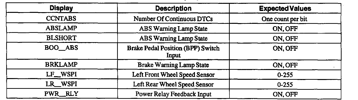 ABS Control Module Parameter Identification (PID) Index