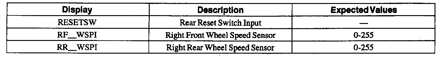 Anti-Lock Brake Control Module Parameter Identification (PID) Index