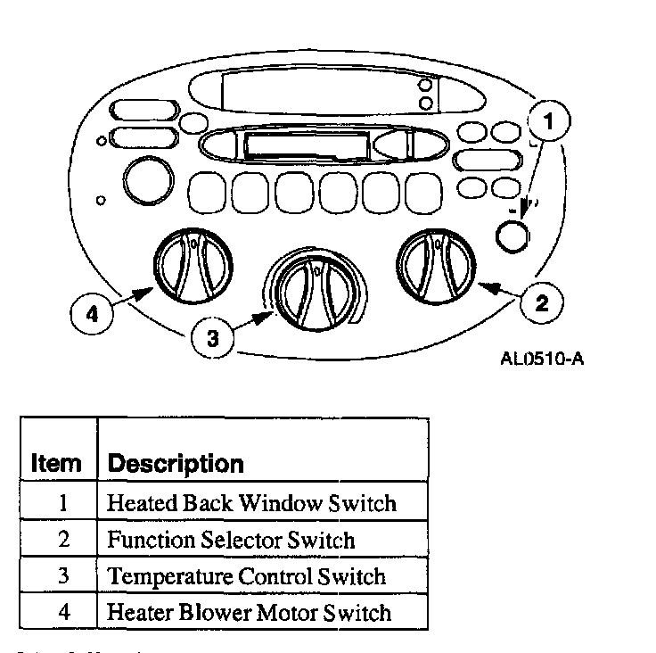 - The A/C heater function selector switch combines a vacuum selector valve with two electrical switches to supply battery positive voltage (B+) to the A/C clutch circuit and the blower motor control circuit.
