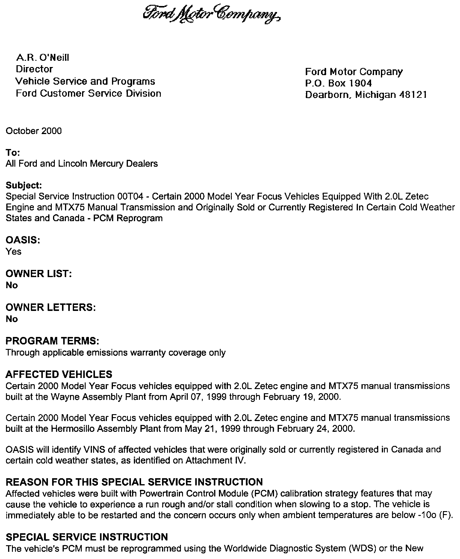 Dealer Letter