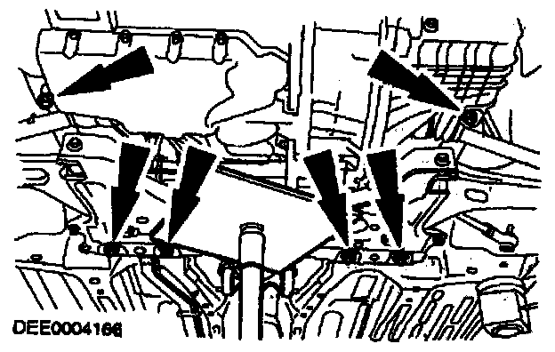 1. Position the subframe using the transmission jack and insert the guide pins.