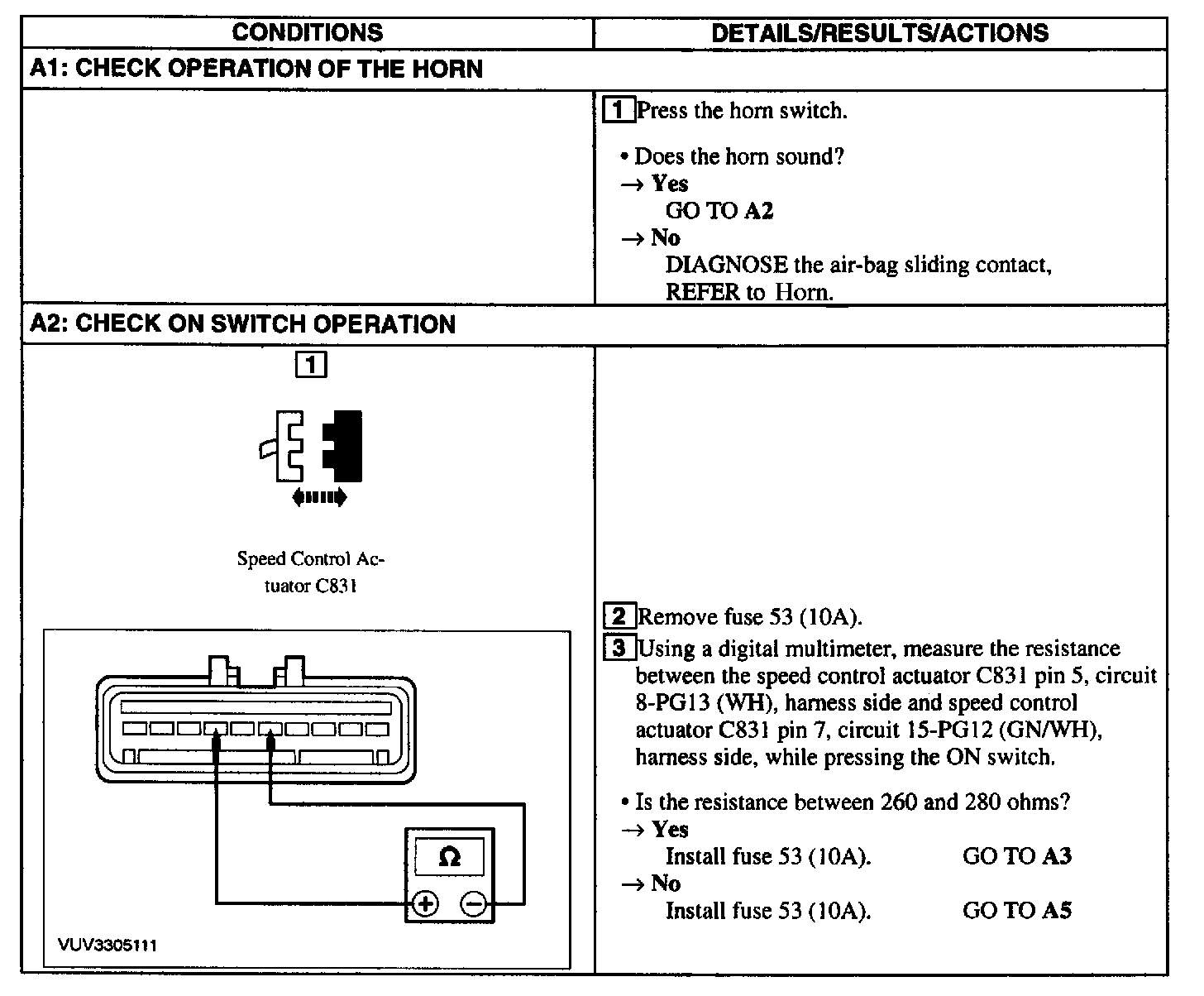 Test A: Speed Control Is Inoperative