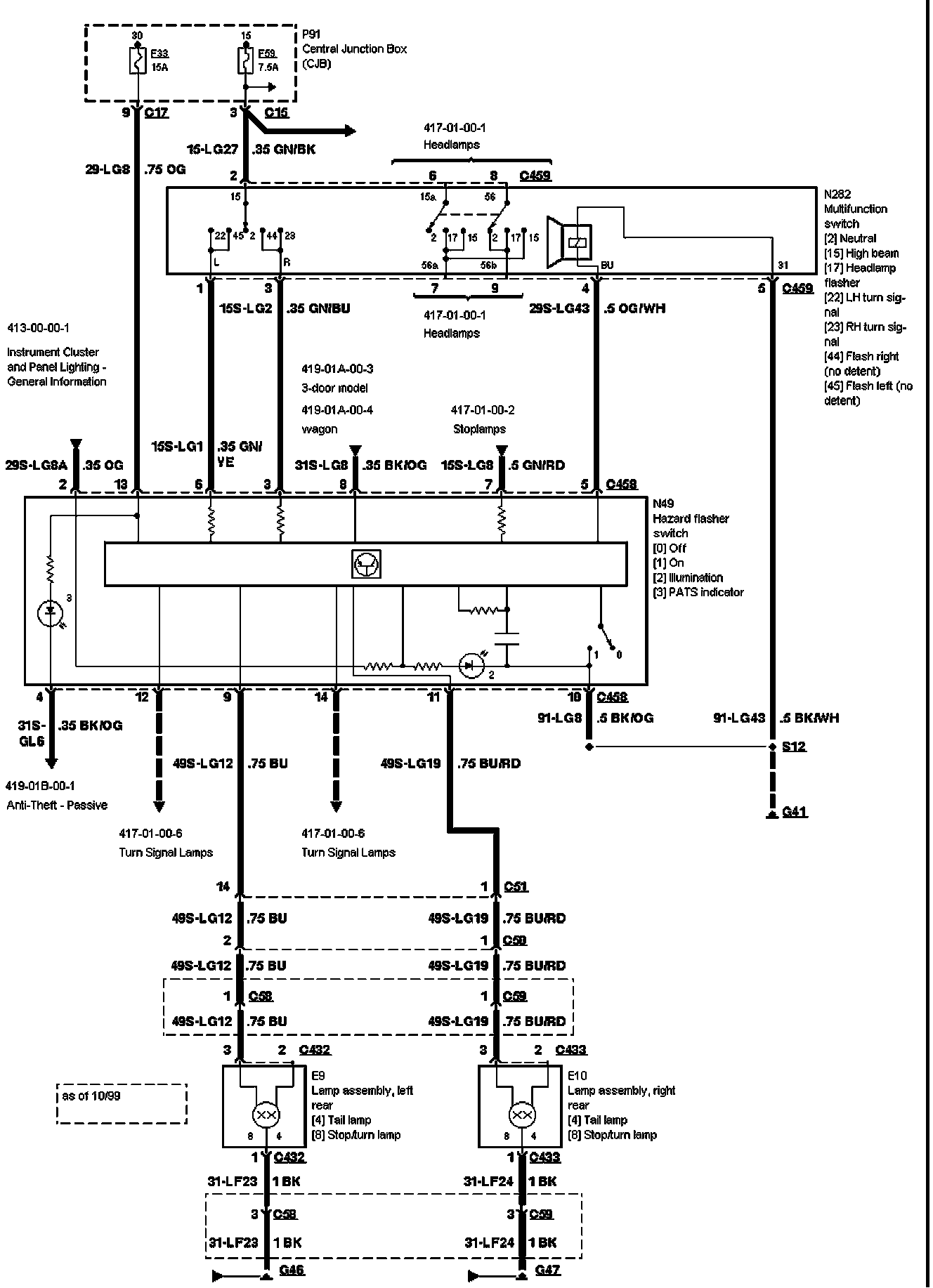 417-01-00-011 Exterior Lighting, Headlamps Turn Signal Lamps, rear, 3-door model, wagon: