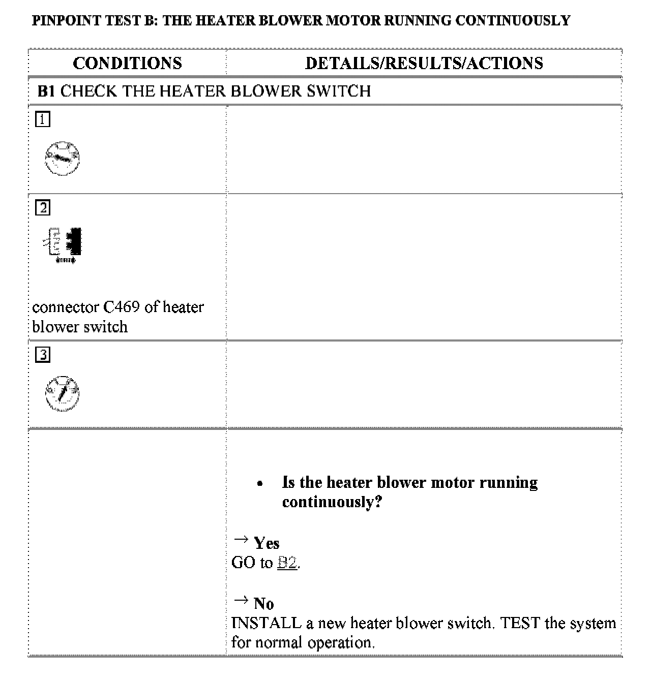 PINPOINT TEST B: THE HEATER BLOWER MOTOR RUNNING CONTINUOUSLY